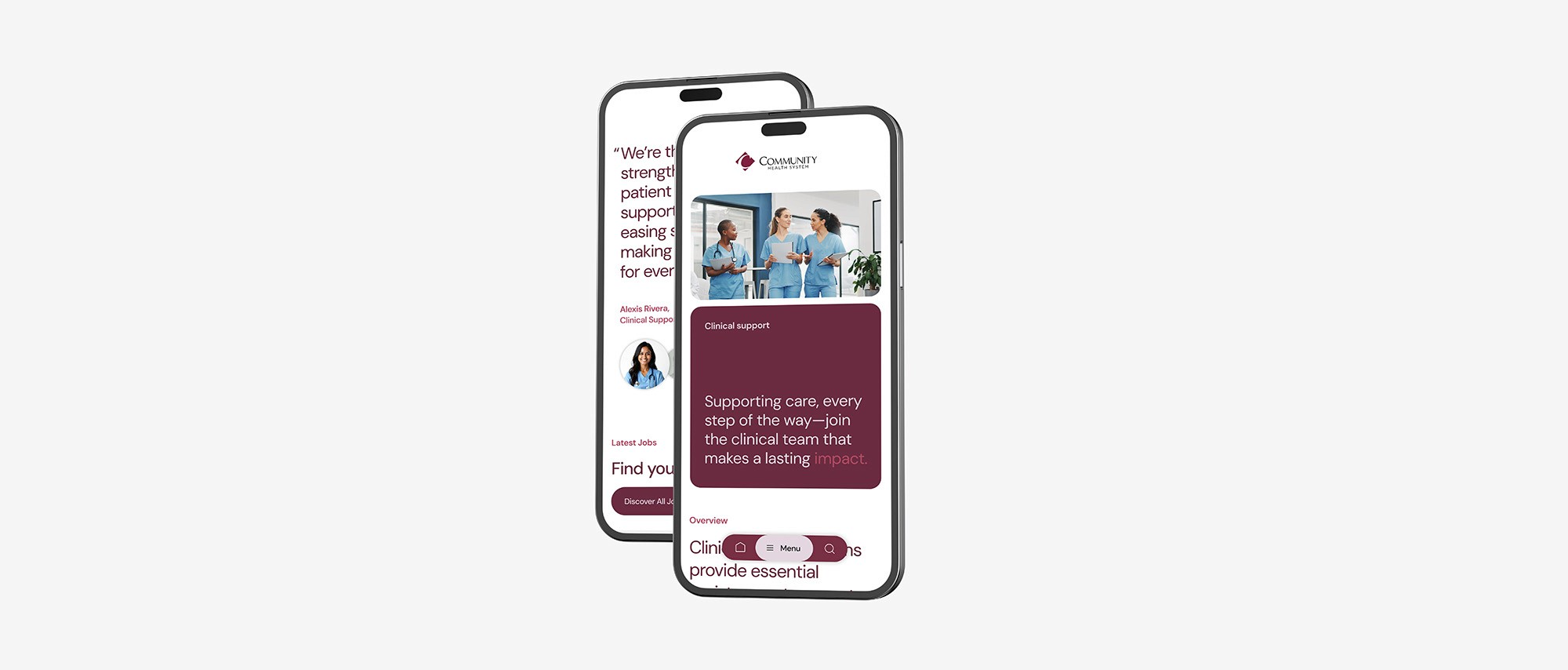 For Community Health System, the focus was to create a careers platform that highlighted the vital role of compassionate, community-based care. The objective was to address a critical need for registered nurse recruitment by providing a clear, welcoming experience that showcased the impact of each role. By emphasising trust, professional growth, and the meaningful contributions of healthcare staff, we aimed to attract talent who are passionate about making a difference in their communities and advancing patient care.